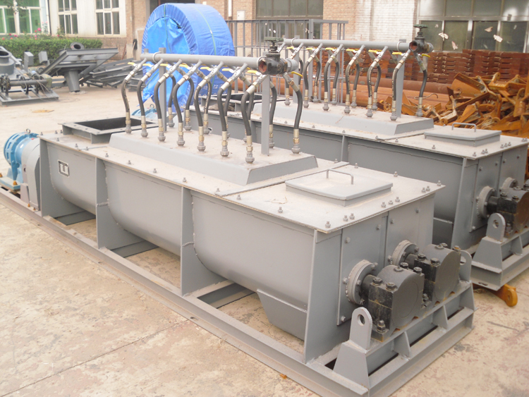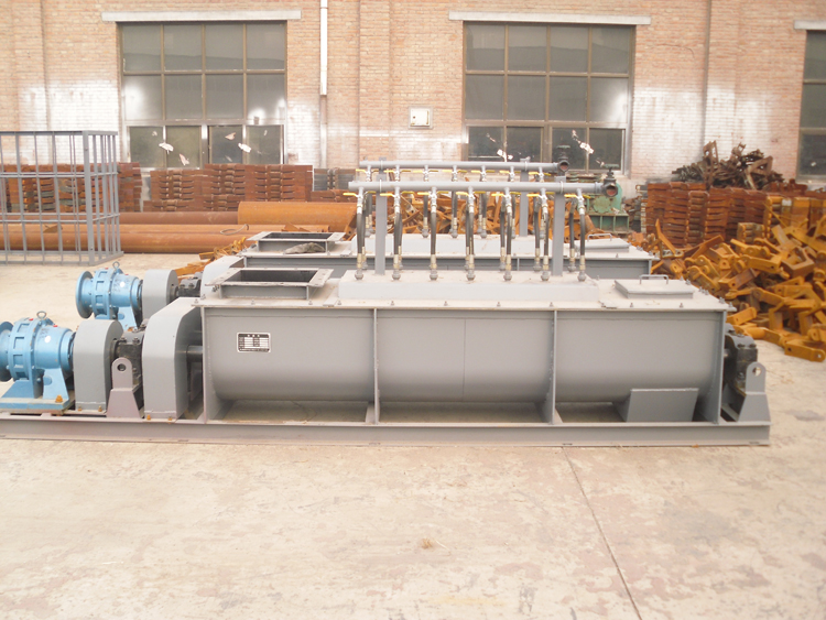 6.雙軸攪拌機設有加濕噴水系統(tǒng),保證噴水均勻,調節(jié)供水量來滿足需要。